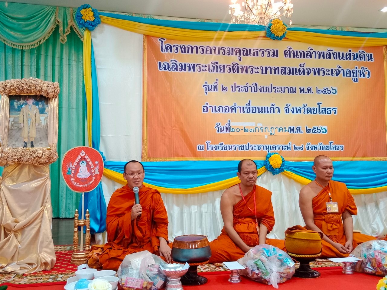 ในการนี้ พระครูเมธีธรรมบัณฑิต เจ้าคณะอำเภอคำเขื่อนแก้ว ให้ความเมตตาเป็นประธานสงฆ์ มี พระครูวาปีธรรมวิโรจน์ เจ้าอาวาสวัดหนองเลิง พระวิทยากรจากมหาวิทยาลัยมกุฏราชวิทยาลัย วิทยาลัยศาสนศาสตร์ยโสธร และคณะสงฆ์อำเภอคำเขื่อนแก้ว ปลัดอำเภอ สมาชิกแม่บ้านมหาดไทยอำเภอคำเขื่อนแก้ว ผู้อำนวยการโรงเรียน คณะผู้บริหาร คุณครู และนักเรียนโรงเรียนราชประชานุเคราะห์ ๒๘ จังหวัดยโสธร ร่วมกิจกรรม