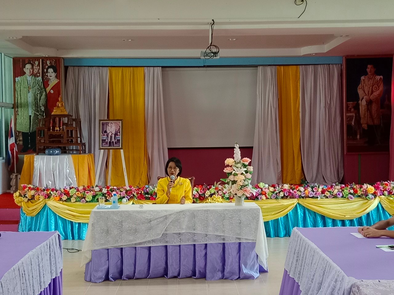 วันที่ 25 ก.ค. 2566 (10:05 น.)วันที่ ๒๑ กรกฎาคม ๒๕๖๖ เวลา ๑๔.๔๐ น. นางยุพิน ภัทรกุลพงศ์ นายอำเภอคำเขื่อนแก้ว พบปะนักเรียนโรงเรียนโพนทันเจริญวิทย์ เพื่อปลูกฝังอุดมการณ์รักชาติ ศาสนา พระมหากษัตริย์ ความกตัญญู กตเวทิตา ต่อผู้มีพระคุณ เข้าใจในบทบาทหน้าที่ สิทธิ และเสรีภาพที่พึงกระทำได้ และการจัดทำแผนงานกิจกรรมต่อสถาบันหลักของชาติ ณ ห้องประชุม โรงเรียนโพนทันเจริญวิทย์ อำเภอคำเขื่อนแก้ว จังหวัดยโสธร