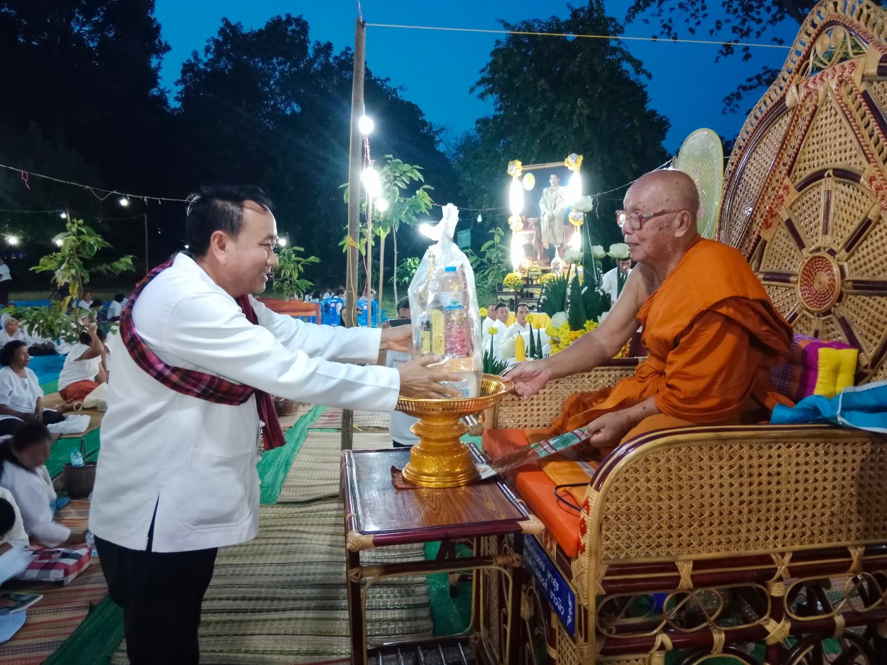 วันที่ 21 ส.ค. 2566 (11:11 น.)วันที่ ๑๙ สิงหาคม ๒๕๖๖ เวลา ๑๘.๐๐ - ๒๐.๑๕ น. นางยุพิน ภัทรกุลพงศ์ นายอำเภอคำเขื่อนแก้ว ร่วมกิจกรรมธรรมะสัญจร ประจำปี พ.ศ. ๒๕๖๖ โดยคณะสงฆ์อำเภอคำเขื่อนแก้ว ณ วัดดอนดู่ บ้านดอนดู่ หมู่ที่ ๘ ตำบลย่อ อำเภอคำเขื่อนแก้ว จังหวัดยโสธร