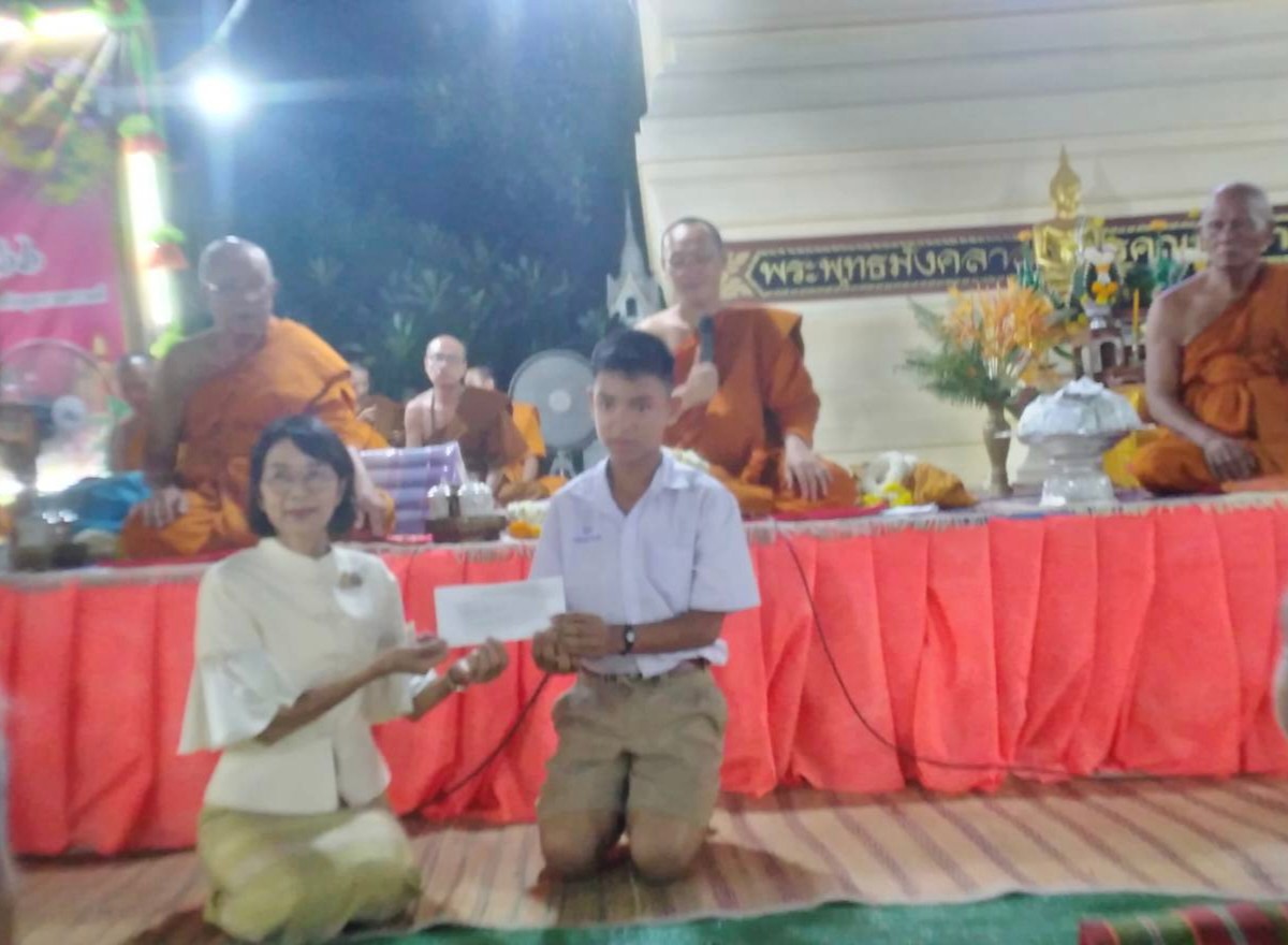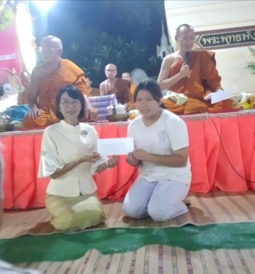 ในการนี้ นายอำเภอคำเขื่อนแก้ว ได้เป็นตัวแทนคณะสงฆ์อำเภอคำเขื่อนแก้ว มอบทุนการศึกษา จำนวน ๓ ทุน ๆ ละ ๑,๐๐๐ บาท รวม ๓,๐๐๐ บาท แก่เด็กนักเรียนในพื้นที่ด้วย