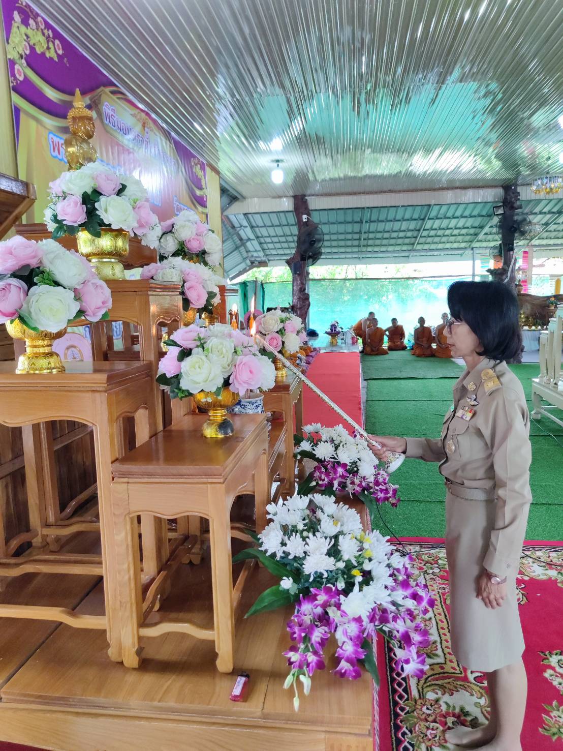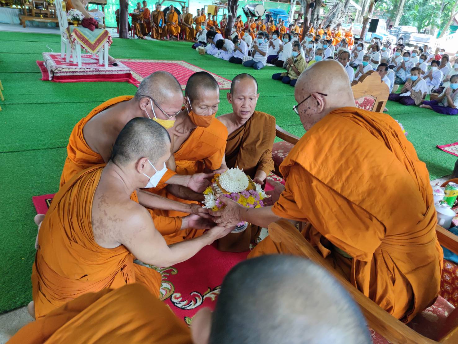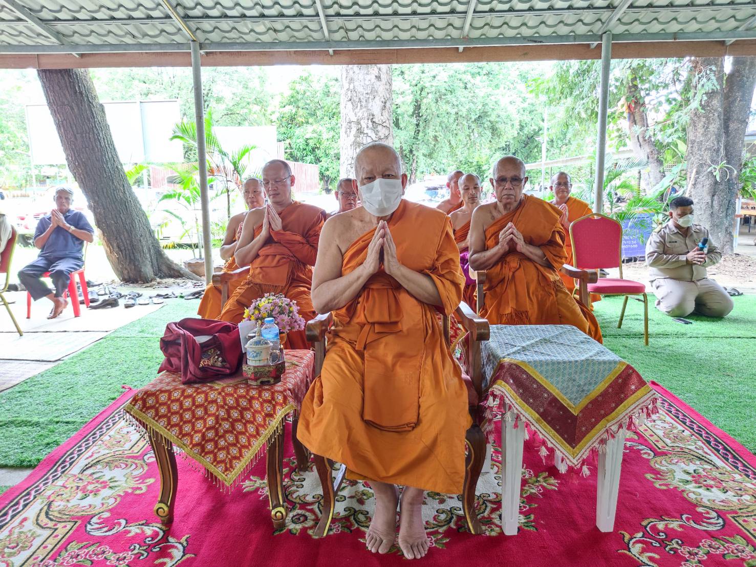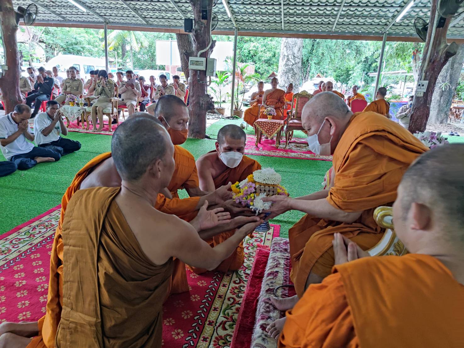 โดยมี พระเทพวงศาจารย์ เจ้าคณะจังหวัดยโสธร เป็นประธานสงฆ์ มีพระครูอุดมศาสนธรรม ที่ปรึกษาเจ้าคณะอำเภอคำเขื่อนแก้ว พระครูเมธีธรรมบัณฑิต เจ้าคณะอำเภอคำเขื่อนแก้ว พร้อมคณะสงฆ์ สามเณร และหัวหน้าส่วนราชการ ปลัดอำเภอ นายกองค์การบริหารส่วนตำบลสงเปือย รองนายกองค์การบริหารส่วนตำบลสงเปือย กำนัน ผู้ใหญ่บ้าน ฯลฯ และพุทธศาสนิกชน ร่วมพิธี