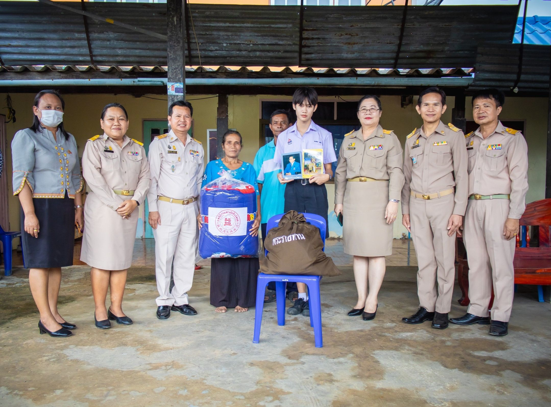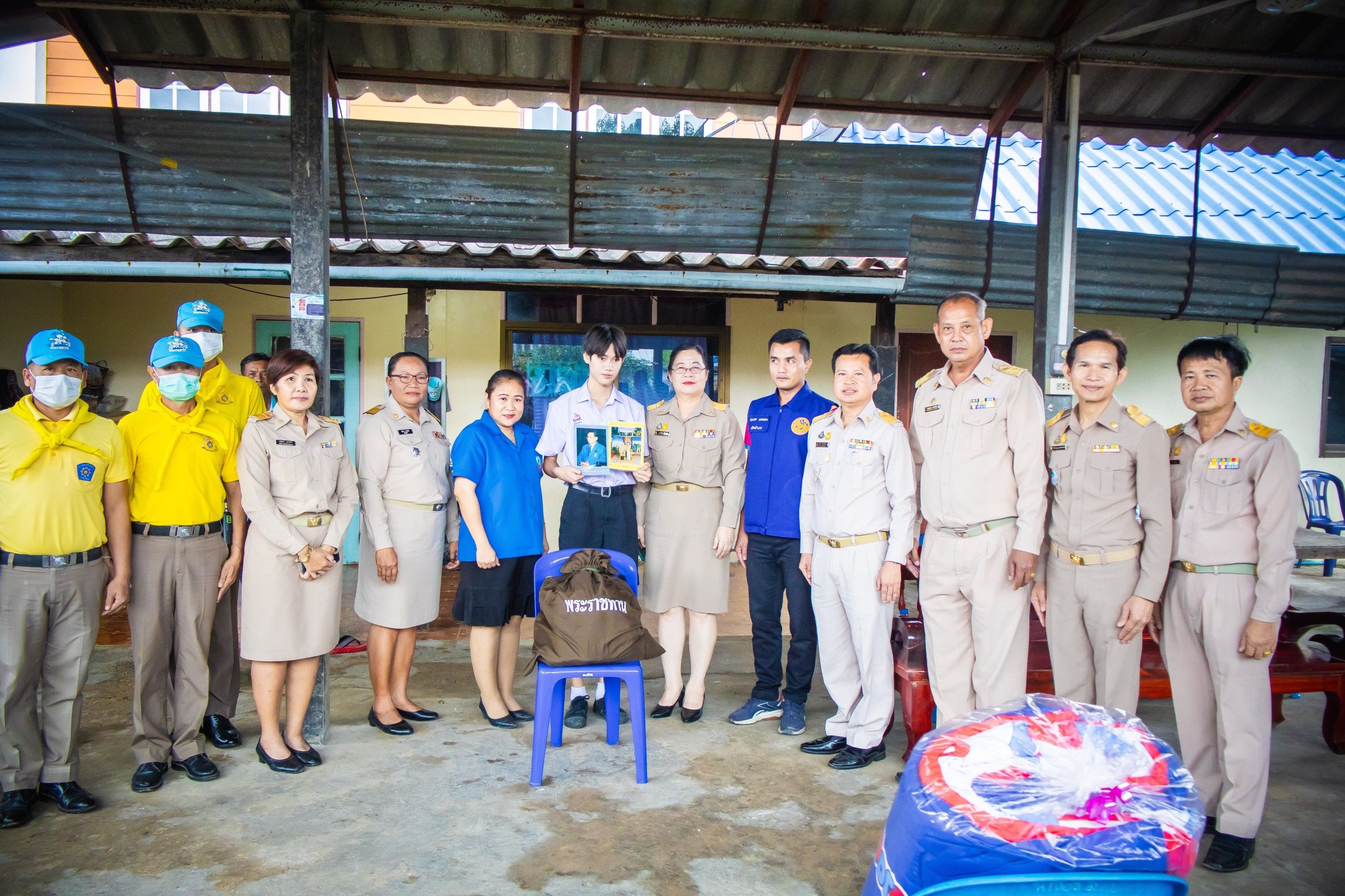 วันที่ 21 ก.ย. 2566 (13:46 น.)วันที่ ๑๕ ก.ย.๒๕๖๖ เวลา ๑๔.๐๐ น. นางยุพิน ภัทรกุลพงศ์ นายอำเภอคำเขื่อนแก้ว มอบหมายให้ นายชัยนเรศ ยอดแตง ปลัดอำเภอหัวหน้ากลุ่มงานบริหารงานปกครอง สมาชิกแม่บ้านมหาดไทยอำเภอคำเขื่อนแก้ว คณะครูโรงเรียนสมเด็จพระญาณสังวร ในพระสังฆราชูปถัมภ์ นายกอบต.นาคำ/บุคลากร ในสังกัด จิตอาสาพระราชทาน ผู้ใหญ่บ้าน ฯลฯ ในพื้นที่ร่วมลงพื้นที่มอบถุงพระราชทานแก่นายพงศธร ทองปาน นักเรียนชั้น ม.4 โรงเรียนสมเด็จพระญาณสังวร ในพระสังฆราชูปถัมภ์ ซึ่งเป็นนักเรียนทุนพระราชทานเพื่อการศึกษาสงเคราะห์มูลนิธิราชประชานุเคราะห์ ในพระบรมราชูปถัมภ์ กับกรรมการและผู้ช่วยเลขานุการ ฝ่ายการสงเคราะห์มูลนิธิราชประชานุเคราะห์ประจำจังหวัด เพื่อติดตามผลการเรียนนักเรียนทุนพระราชทานเพื่อการศึกษา ฯ ณ บ้านนาห่อม หมู่ที่ ๖ ตำบลนาคำ อำเภอคำเขื่อนแก้ว จังหวัดยโสธร