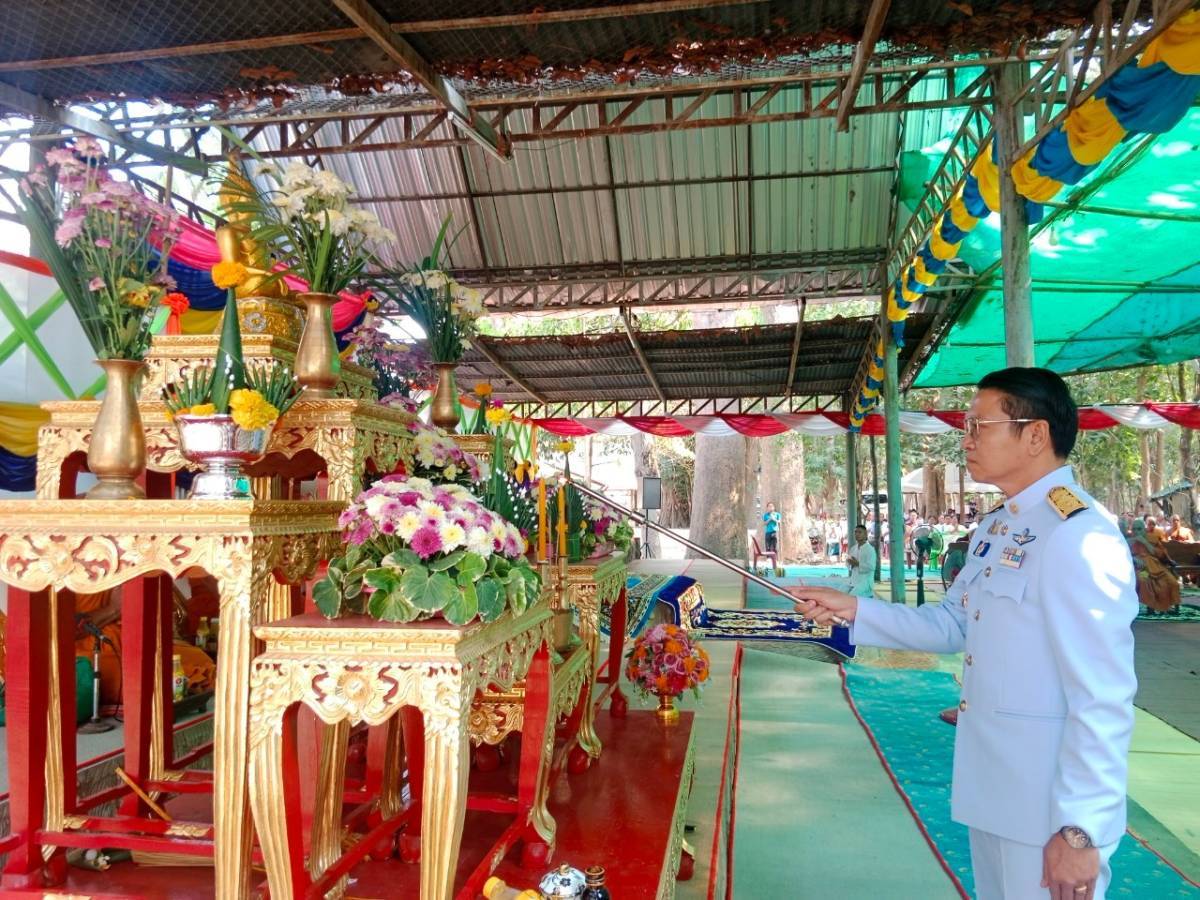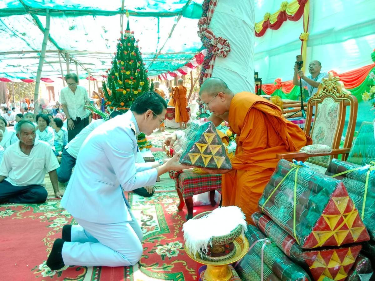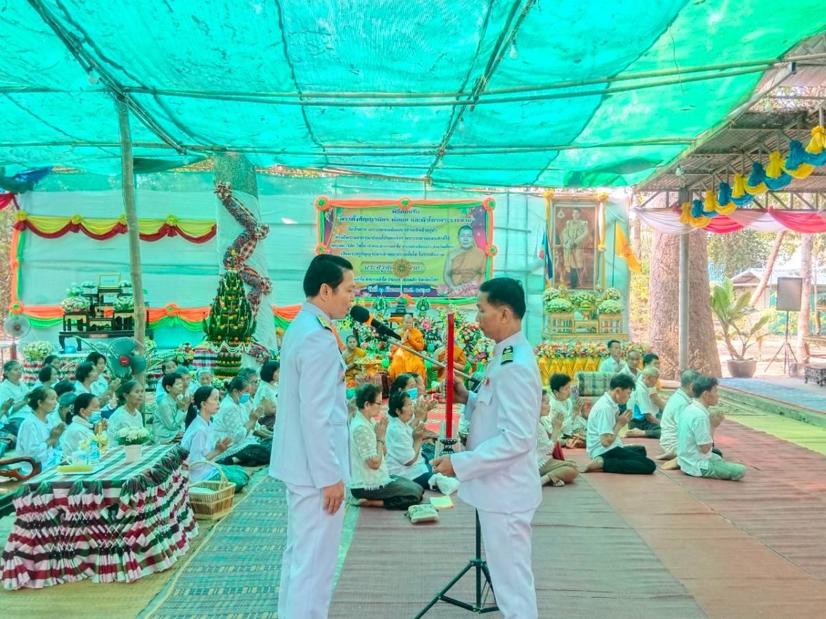 โดยมี พระครูอุดมศาสนธรรม ที่ปรึกษาเจ้าคณะอำเภอคำเขื่อนแก้ว เป็นประธานสงฆ์ มีพระครูเมธีธรรมบัณฑิต เจ้าคณะอำเภอคำเขื่อนแก้ว คณะสงฆ์อำเภอคำเขื่อนแก้ว หัวหน้าส่วนราชการ ผู้บริหารองค์กรปกครองส่วนท้องถิ่น ผู้บริหารสถานศึกษา กำนัน ผู้ใหญ่บ้าน ฯลฯ และประชาชนในพื้นที่ ร่วมพิธี